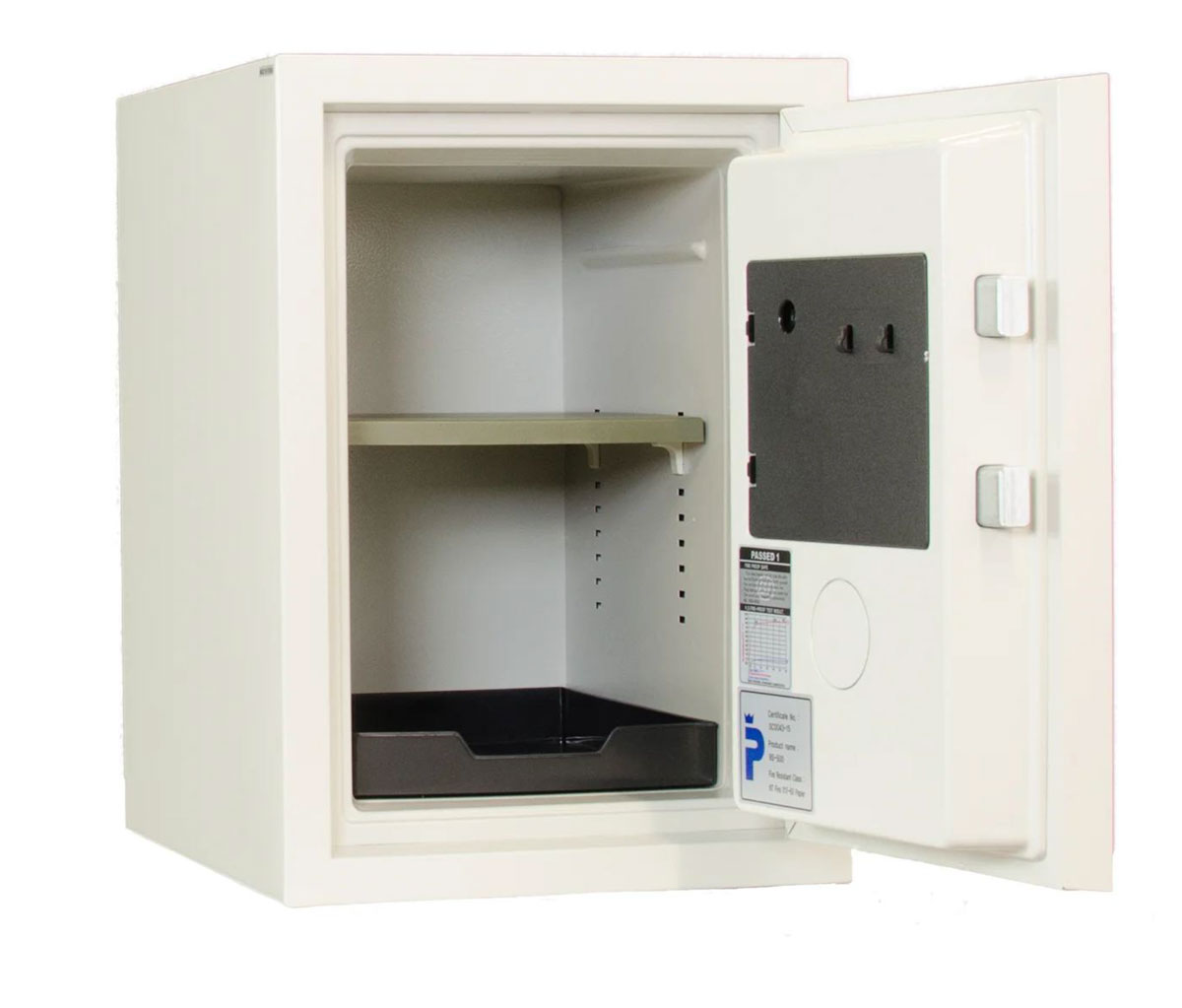 DS-500E är vårt mest sålda dokumentskåp alla kategorier. Rymmer fyra stående pärmar i säker brandskyddad förvaring. Elkodlås som standard så du slipper hantera nycklar. Ett förankringshål i botten. För brandskyddad förvaring av värdefulla handlingar, foton, cd, dvd, memory sticks mm använder man ett dokumentskåp respektive ett brandskåp. Brandklassningen har olika underklasser beroende på hur lång tid skåpet ska stå emot värmen till viss innertemperatur. Tidsangivelse är alltid i minuter och är 30, 60, 90 eller 120.