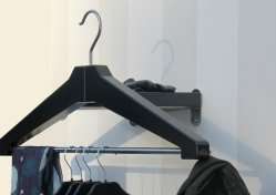 På den långa galgstången nertill på PURO hatthylla hängs upp till 15 standardgalgar.