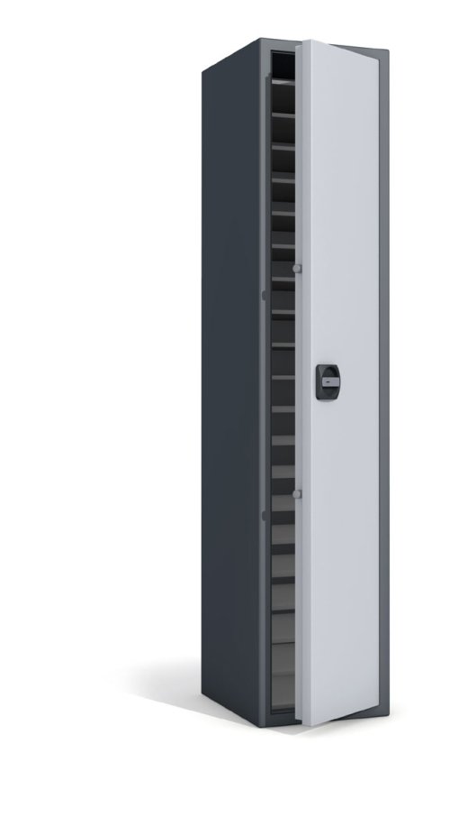 Robust och ventilerat laptopskåp för förvaring av bl.a. laptop och läsplattor under laddning. Robust konstruktion med låskolvar i 3 riktningar. Rymmer 20 laptops eller 40 läsplattor. Standardlås nyckel.