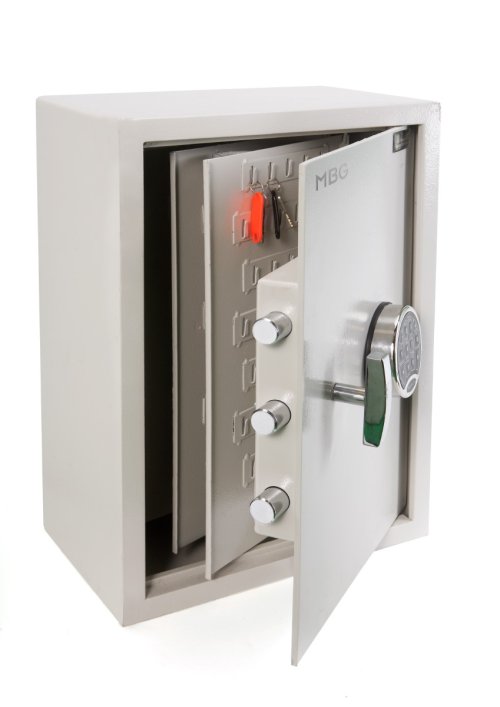 Nyckelskåpet är tillverkat i 6 mm stålplåt i dörr samt 3 mm stålplåt i väggarna. Nyckelskåpet är utrustat med ett programmerbart elektroniskt kodlås. Bultar medföljer för att kunna förankra skåpet.