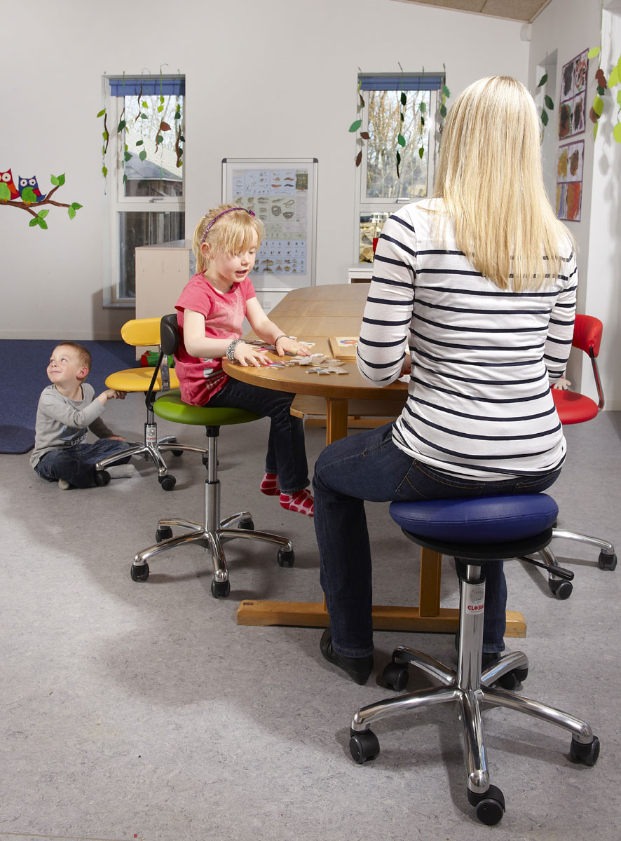 Stolen som stärker och håller muskelgrupperna i ryggen och ländryggen aktiva medan du arbetar. Bakgrunden och idén med stolen har uppkommit genom några personer inom idrottsvärlden - just att kombinera aktivitet och vila på ett genomtänkt sätt. Detta att man försäkrar sig om de bästa möjliga förutsättningarna för en topprestation, med andra ord att komma i balans med sin kropp och sitt arbete.