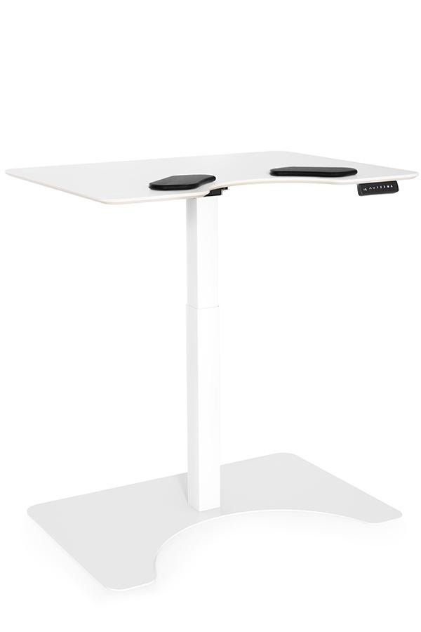 Salli E-desk passar utmärkt både i hemmet och kontoret och kan användas både vid sittande och stående arbeten. Passar bra som databord eller sidobord. Skivan har maguttag som ger stöd åt överkroppen. Stativet/underredet har runda kantprofiler och finns i vitt. Elektrisk höjdjustering, intervall 70-119 cm. Mått på bordsskivan är 93 x 70 x 1,6 cm. Basskivan är 93 x 62 cm. Bordsskivan i vitt eller svart. Armstöd ingår. För bästa ergonomi komplettera med Sallis sadelstolar.