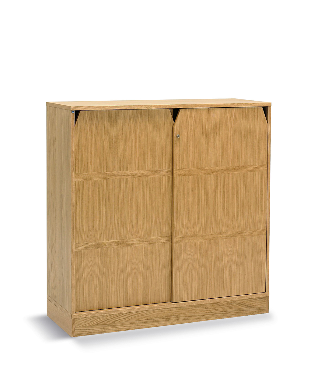Öppet skåp som även kan fås med skjutdörrar. Möjlighet att få dörrar i avvikande material/färg. Dörrarna levereras i par.