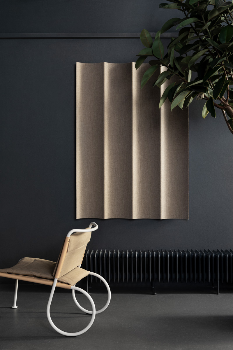 ”-Inspirationen till Scala XL kommer från pelare och välvda tak från tidiga byggnader. Dessa former har jag översatt och skalat om till en tidlös, böljande form som passar bra som ljudabsorbent för moderna interiörer,” berättar designer Anya Sebton.