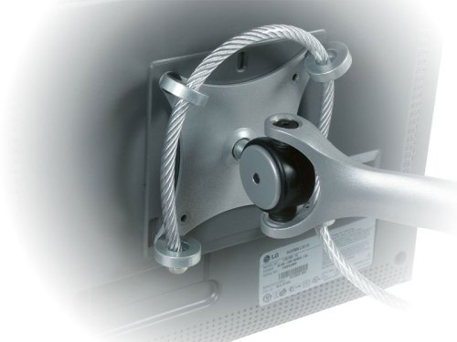Smart låsning för bildskärm Går även att förankra i datorchassi. 1 st plastöverdragen stålvajer med hänglås, förstärkt låshylsa, 4 st stålcylindrar med gängstänger M4 (VESA-standard). Om man beställer flera kan man beställa med lika eller olika lås.